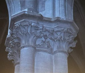 Des bourgeons sculptés en haut des chapiteaux et qui s’ouvrent de plus en plus selon l’orientation à la lumière !
