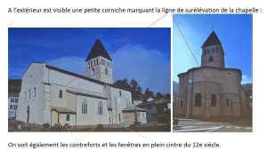 Lors des travaux de rénovation, l’accès aux combles a permis de connaître la disposition de l’église d’origine : les tuiles creuses étaient posées directement sur la maçonnerie (comme à Belleville). De même 3 oculis ont été murés car ils se sont retrouvés à l’intérieur du bâtiment suite à la surélévation.