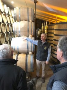 Dans le chai, on sent l’évaporation d’alcool (la part des anges) mais aussi l’odeur du chêne car de nouveaux fûts viennent d’être reçus. Les durées de vieillissement sont très longues. Pour l’AOP, le produit doit vieillir 2 ans minimum pour les Marcs, 3 ans mini pour les Fines.