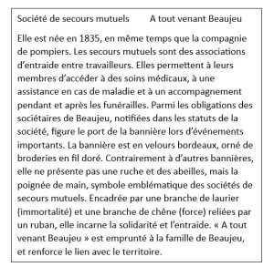 Si la bannière existe depuis le Moyen-Âge, le 19e siècle offre un vaste renouveau, tant sur le plan civil que religieux. Dans cette période pleine de bouleversements (démographique, industriel, politique, …) elles marquent l’appartenance à un groupe : métier, village, association musicale ou sportive, secours mutuel, … Par les images et les textes qu’elles symbolisent, elles rassemblent autour d’une croyance, d’une valeur, d’une passion ou d’une revendication.