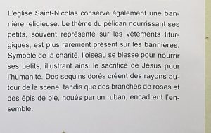 Certaines bannières civiles ou religieuses reflètent la géographie (vallée, rivières, reliefs locaux) ou l’histoire locale, renforçant ainsi le sentiment d’appartenance à un territoire ou à une histoire partagée (château, fortifications, église, saint protecteur de la paroisse).