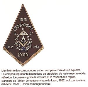 Les travailleurs se regroupent alors dans différentes organisations pour se protéger, comme les sociétés de secours mutuels ou le compagnonnage, association d’artisans et d’ouvriers axée sur la formation professionnelle et la solidarité. La plupart des bannières de la franc-maçonnerie, qui existent depuis le XVIIIe siècle, ont disparu en raison de la fermeture des loges pendant la Seconde Guerre Mondiale. Nombre de loges ont dû refaire leurs emblèmes dans la seconde moitié du XXe siècle.